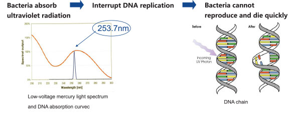 UV-C ultraviolet rays can destroy the DNA and RNA molecular structures of micro-organisms or viral cells, kill growing and/or regenerative cells during sterilization and disinfection. Ultraviolet light in the 240nm-280nm band is the most effective sterilization band.